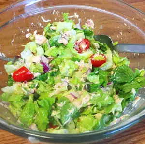 This is my version of a nicoise salad that I can throw together quickly any weekday. I use canned tuna. However, it is prefereble to use fresh, wild caught tuna or even jarred tuna whenever possible. The secret ingredient to this salad is the capers. They really give the dish a pop and a gourmet feel. I like to use salted capers rather than ones in a vinegar brine. Keeping that in mind, there is no need for added salt in this recipe.